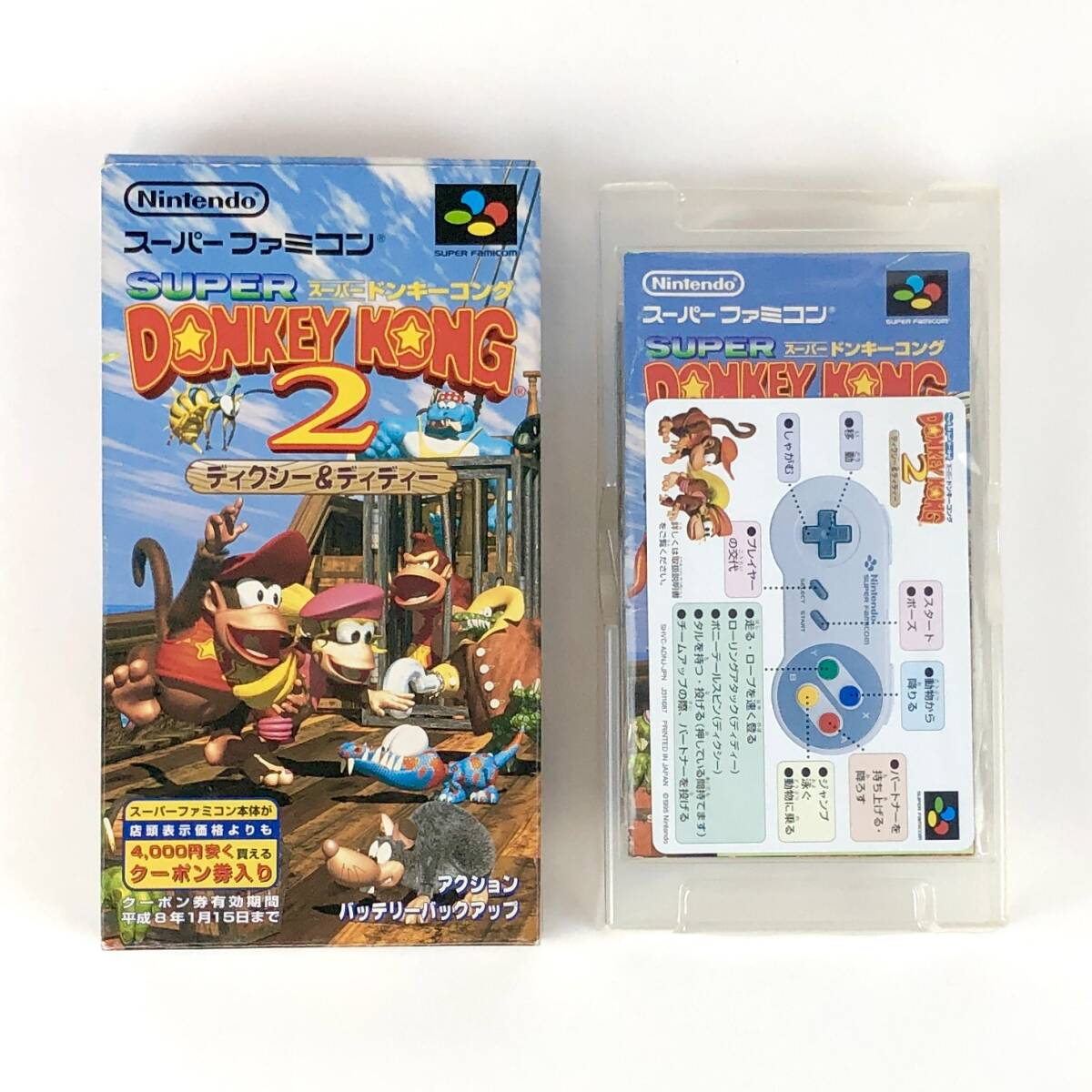 > 【送料無料】 スーパーファミコン スーパードンキーコング2 箱説・カード付き 痛みあり 任天堂 SFC Super Donkey Kong 2 CIB Tested