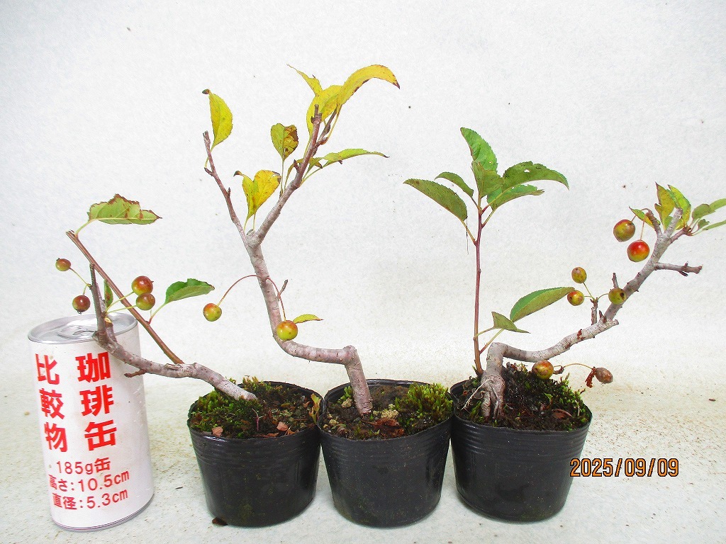 - [緑の市場]海棠 3点組 9/9実付~落果減少想定(9721黒ポット)全高:26㎝*同梱包対応「まとめて取引」厳守*80サイズ送料明記