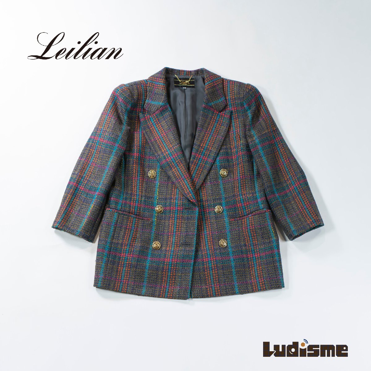 > Leilian レリアン テーラードジャケット チェック柄 マルチカラー ダブル ウール ◆美品◆ レディースアウター レディースジャケット