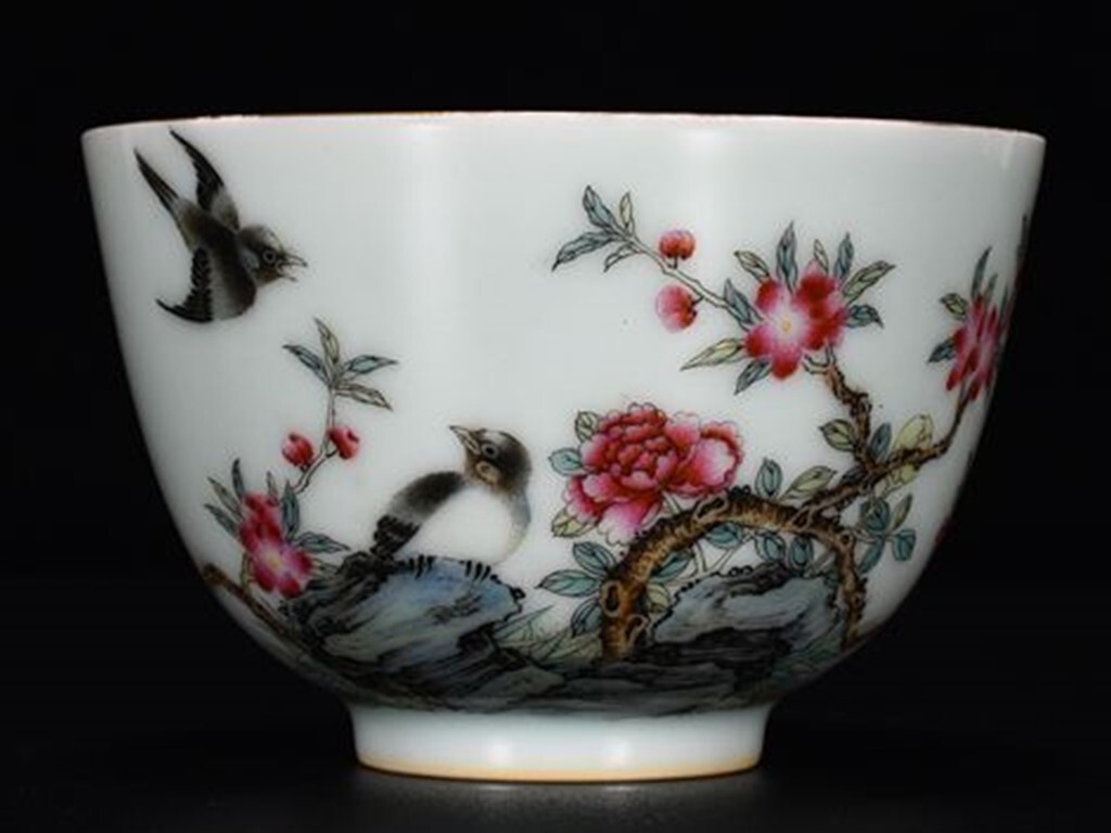 > TC100■極上珍品! 大清雍正年製 款 琺瑯彩花鳥杯 時代物 極上品■高さ6.2cm直径9.8cm■