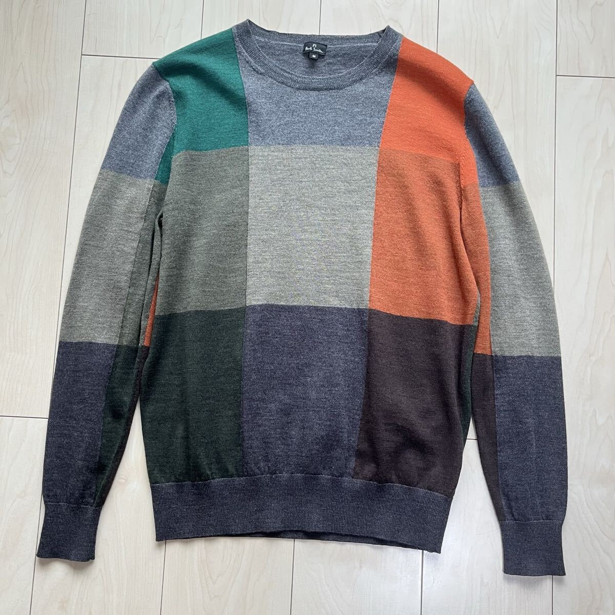 - Paul Smith ポールスミス ニット セーター パッチワーク柄 ウール グレー M
