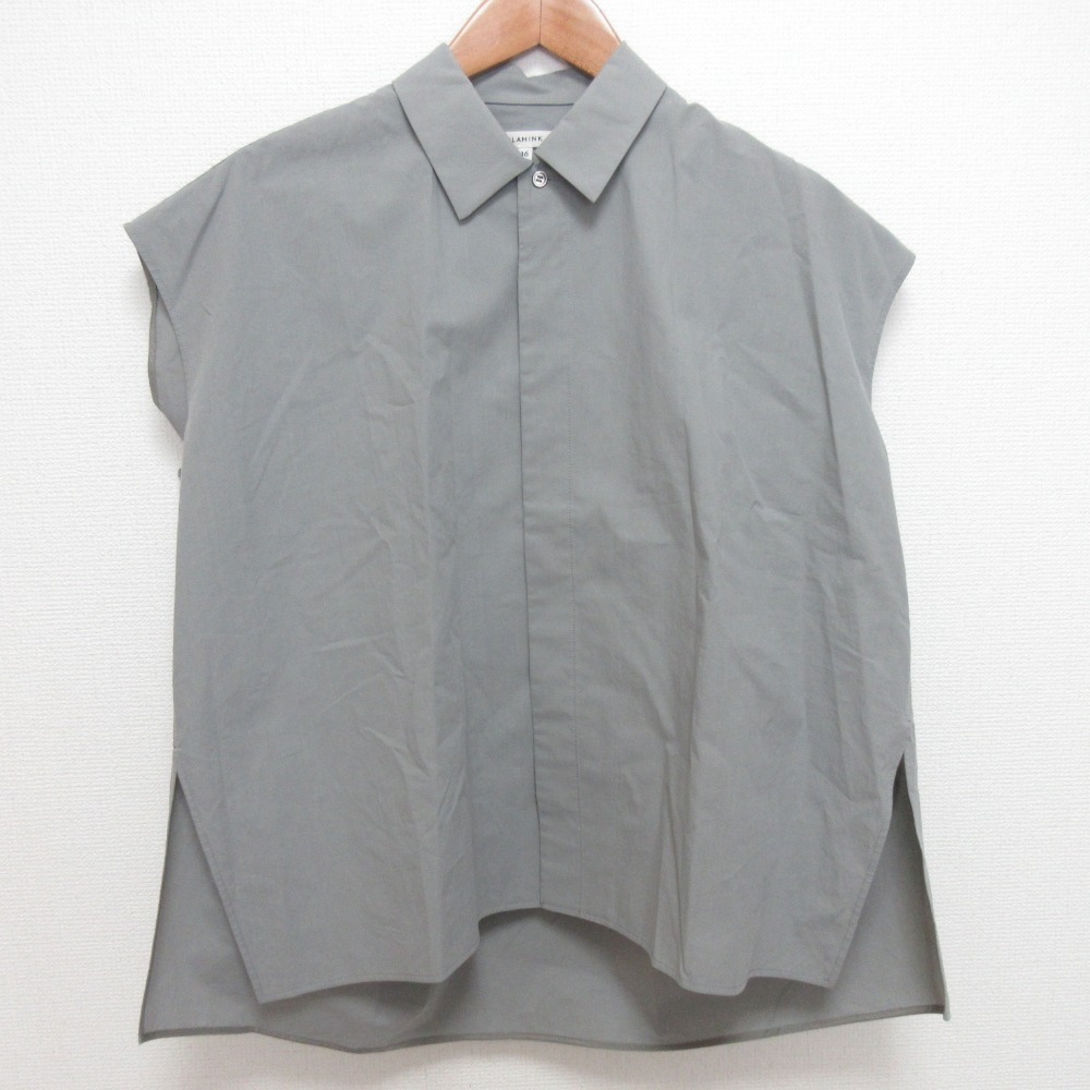- 美品 24SS BLAMINK ブラミンク レギュラーカラー ノースリーブブラウス シャツ 7921-230-0270 サイズ36 グレー