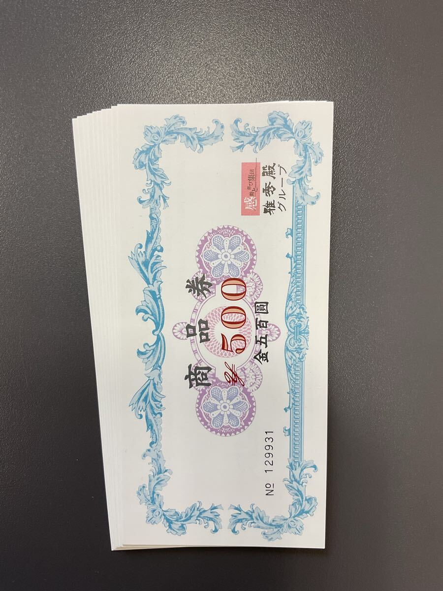 - 。347 雅秀殿グループ 商品券 500円10枚 5000円分 送料無料
