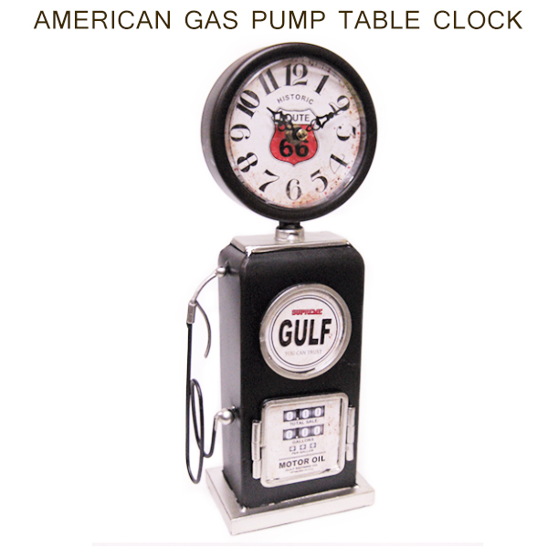 - ガスポンプ型 スタンドクロック 置時計 GULF(ガルフ ブラック)黒 ルート66 ガレージ 卓上 おしゃれ 西海岸風 インテリア アメリカン雑貨