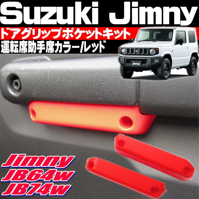 - ● ジムニー JB64w ジムニーシエラ JB74w ドアポケットケース レッド 共締めタイプ インナードアハンドル ポケット化 スマホ 収納 ●