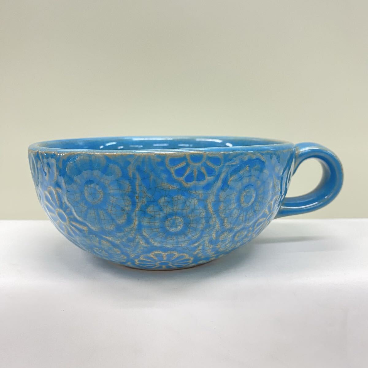 - 643 昭和レトロ ジャンボカップ ビッグサイズ カップ 花柄 レトロ アンティーク ブルー マグカップ 陶器