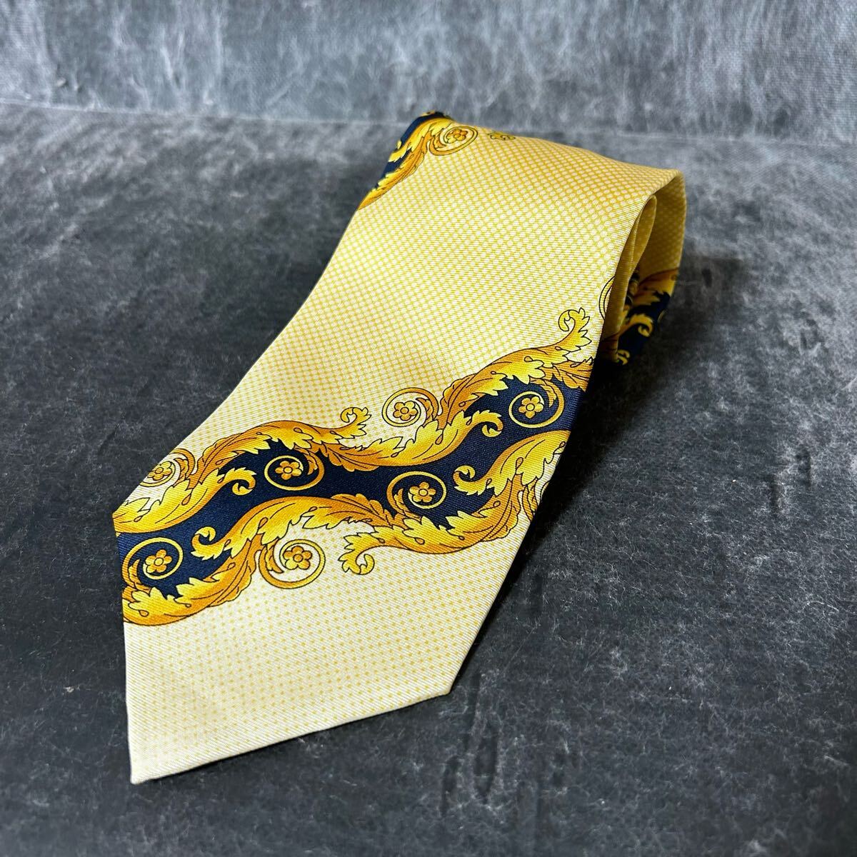 - GIANNIVERSACE ジャンニヴェルサーチ ネクタイ シルク100 総柄 イエロー ネイビー *U