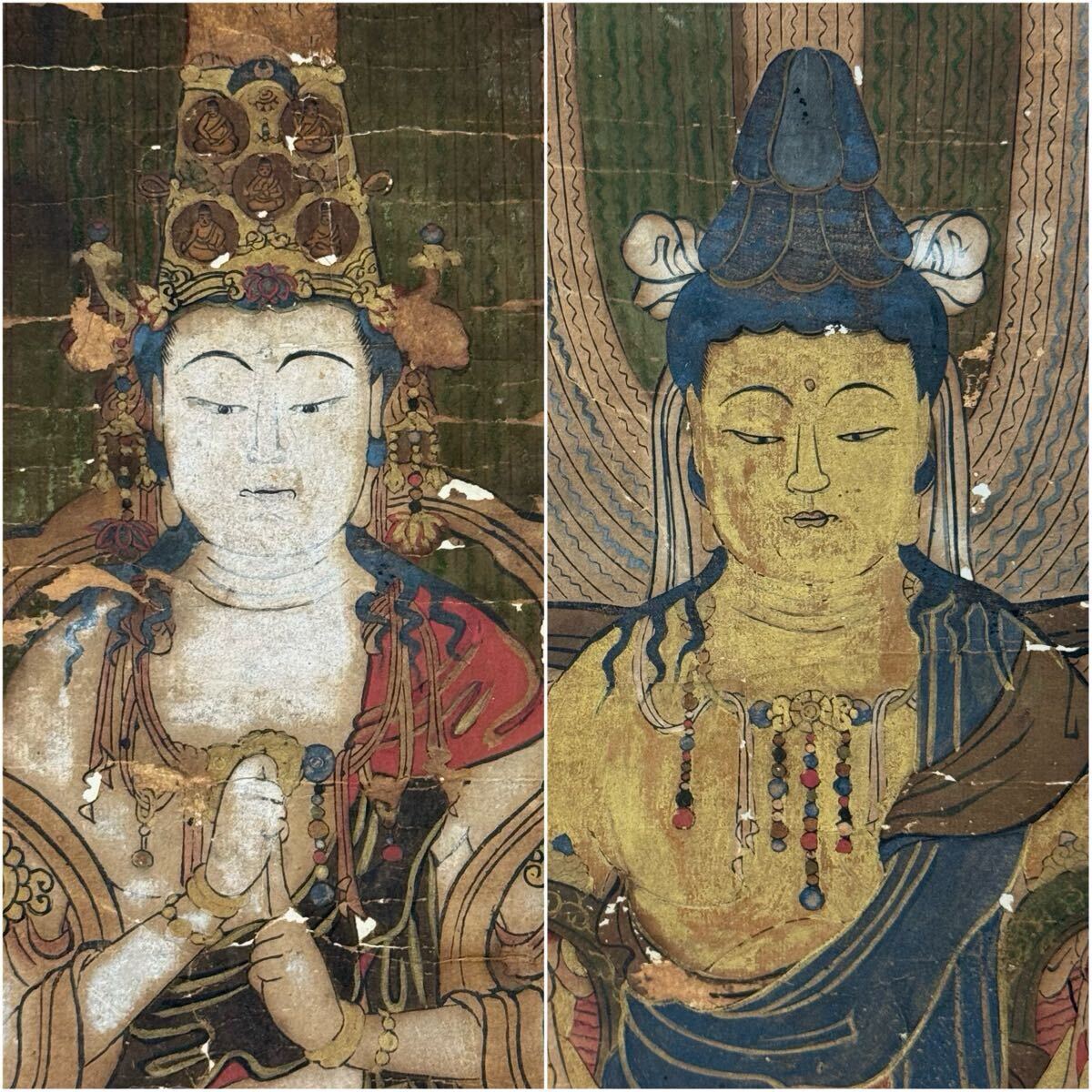 - 古仏画 光明真言曼荼羅 掛軸 紙本 肉筆 大日如来像 仏教美術 日本画 古画 時代品 【3b0822o14 2】