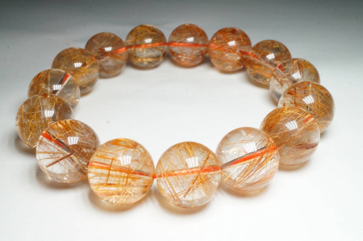 > 1本限定!大特価!迫力の14mm玉!希少!未使用20年前の在庫!一級研磨士が施した匠の逸品!ルチルクォーツブレスレット312ct