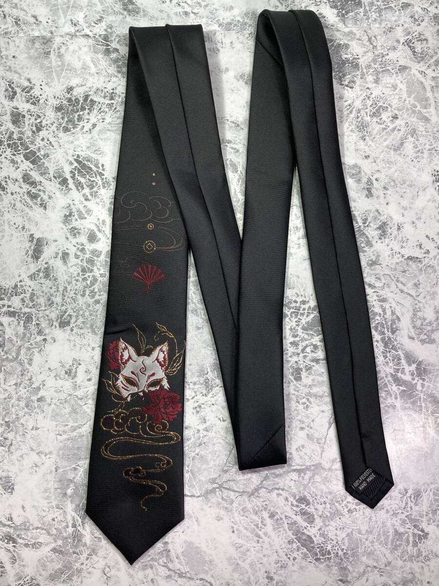- ◆同梱発送可◆「ネクタイ 狐/キツネ 彼岸花/曼珠沙華 黒」fire_sale 【タグ:アクセサリー】