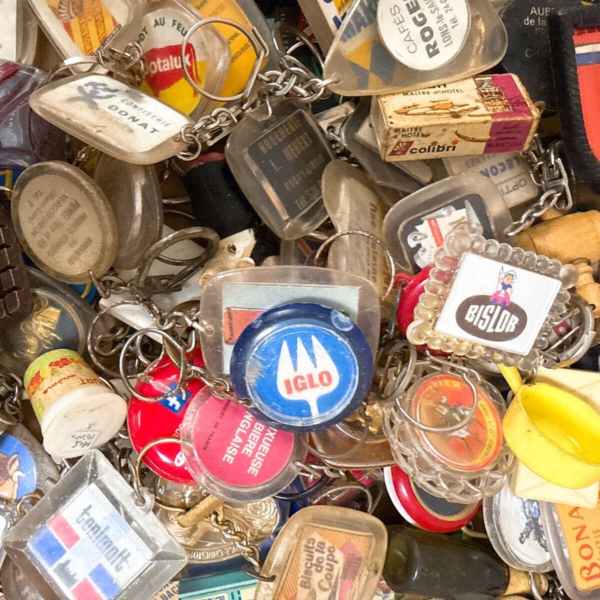 - P612 100個 フレンチキーホルダー フランス ヴィンテージ ビンテージ アンティーク 大量 まとめ まとめ売り 処分 雑貨 ブルボン 卸売 小物