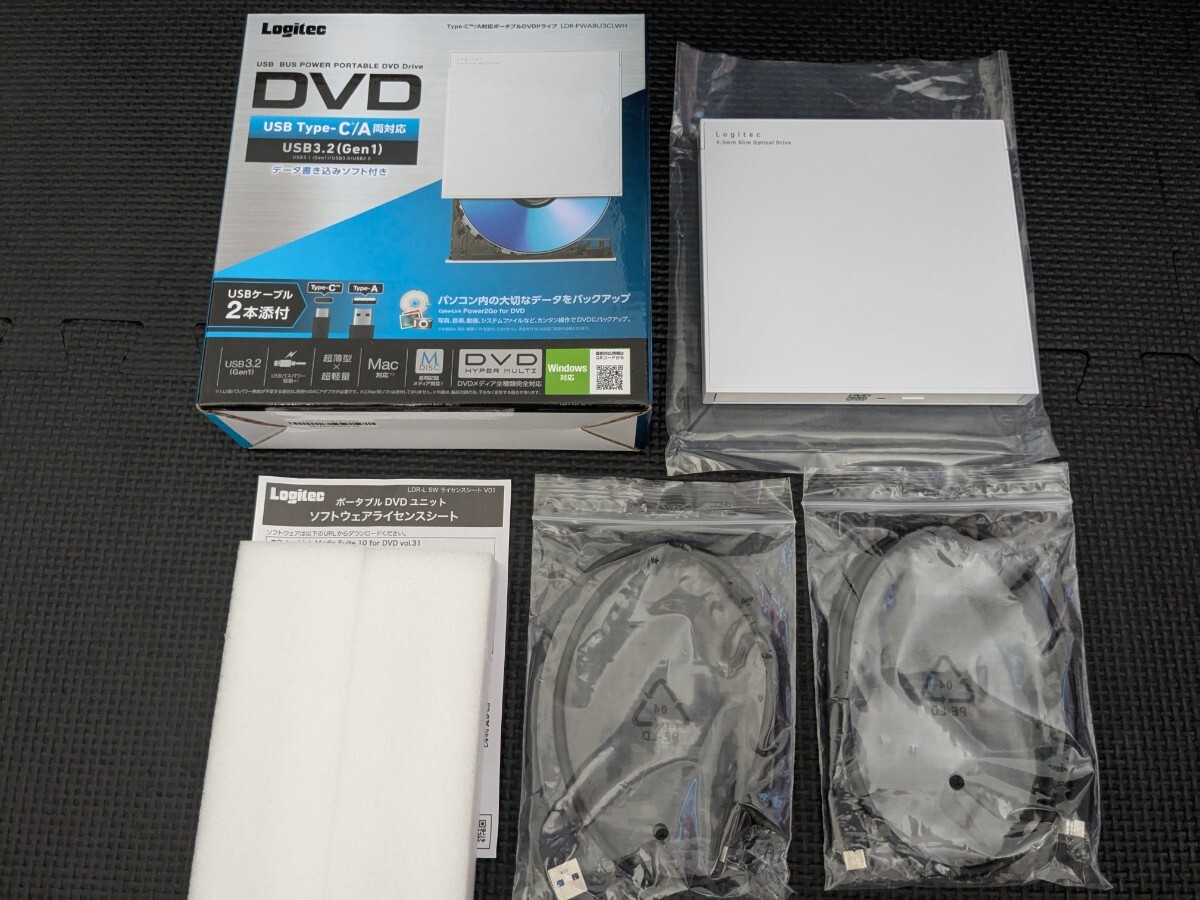 - ◎0709u1301 ロジテック ポータブルDVDドライブ USB3.2 (Gen1) Type-A Type-C ホワイト LDR-PWA8U3CLWH