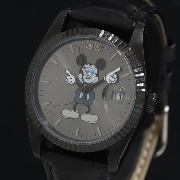 - 稼働 良品 ディズニー QZ ミッキーマウス 1077/2000 デイト ダークグレー文字盤 メンズ腕時計 YUM 2000000 NSK