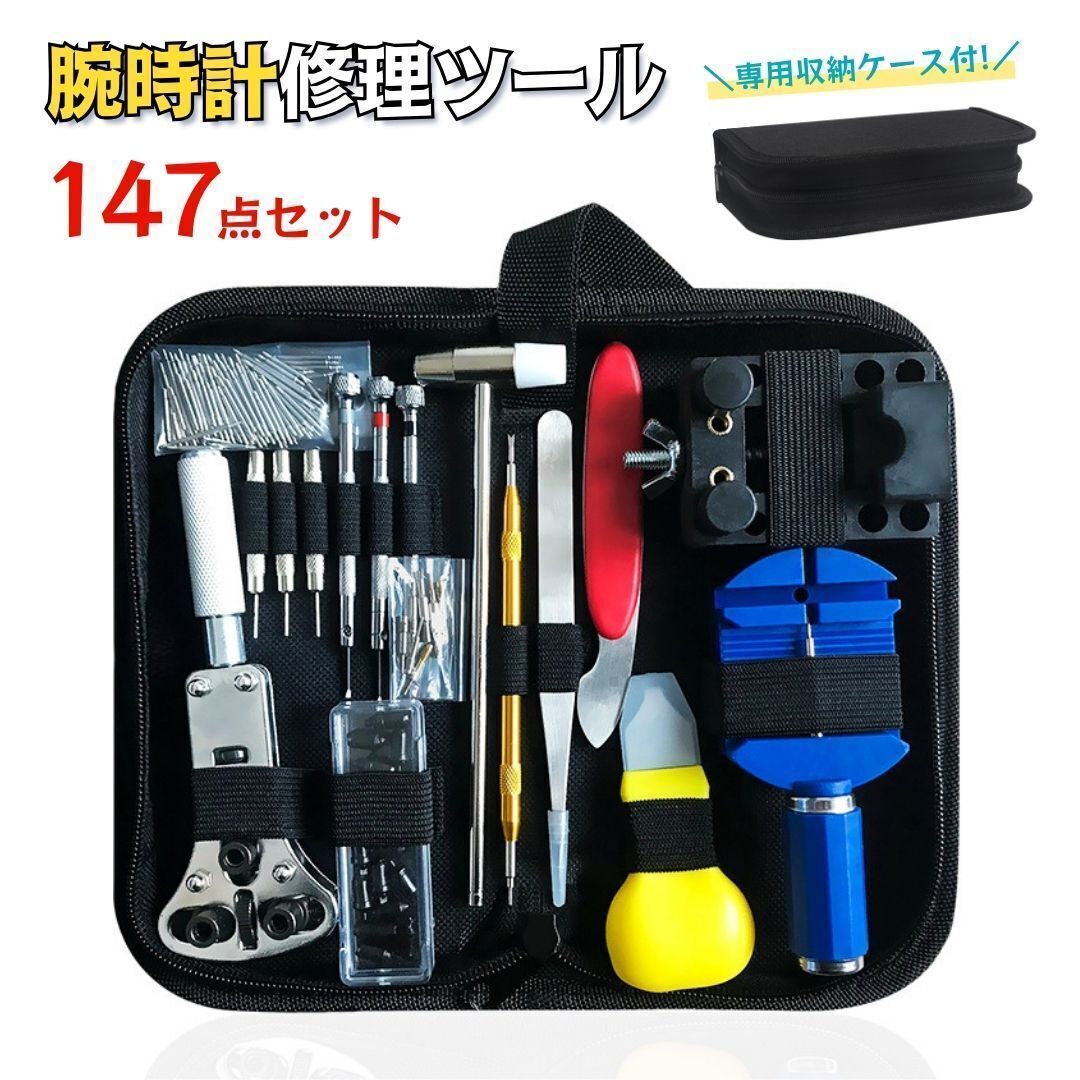 - 腕時計 工具 修理 セット キット 裏蓋開け バネ棒外し 精密ドライバー オープナー 電池交換 ベルト調整 裏ふた 147点 ツール (1093)