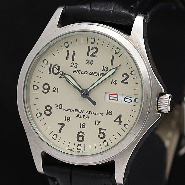 > 稼働 セイコー アルバ フィールドギア V743-8000 QZ アイボリー文字盤 メンズ腕時計 2000000 NSK OKY