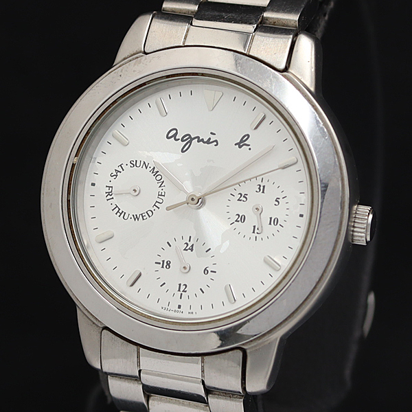- 稼動 アニエスベー V33J-0010 QZ シルバー文字盤 デイデイト レディース腕時計 KTR 2000000 NSK