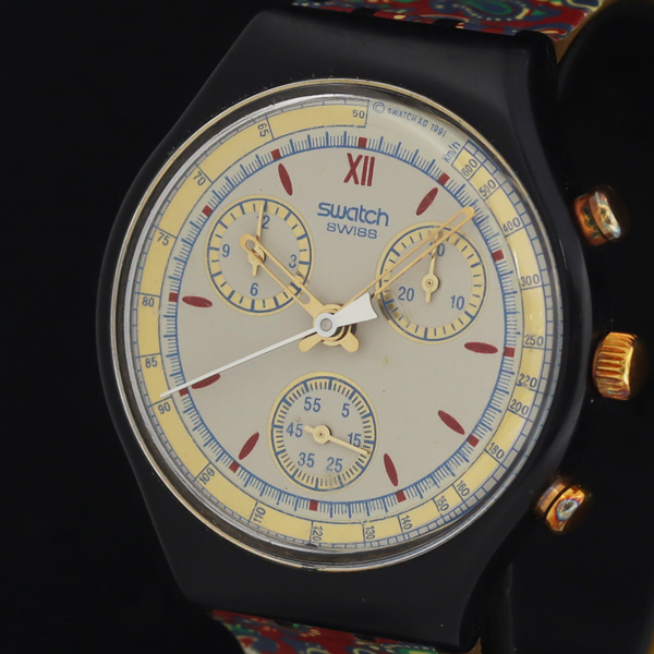 - 稼働 スウォッチ QZ ゴールド系文字盤 クロノグラフ 22石 メンズ/レディース腕時計 KRH 2000000 NSK