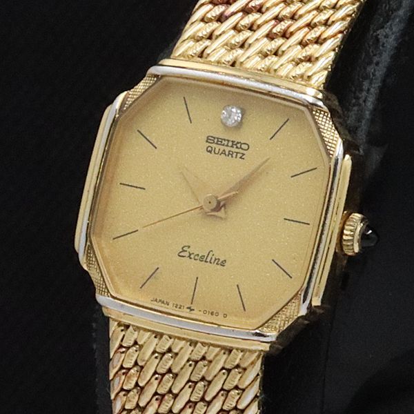 - 稼働 セイコー エクセリーヌ QZ ゴールド文字盤 石付 1221-5080 レディース腕時計 KMR 2000000 NSK