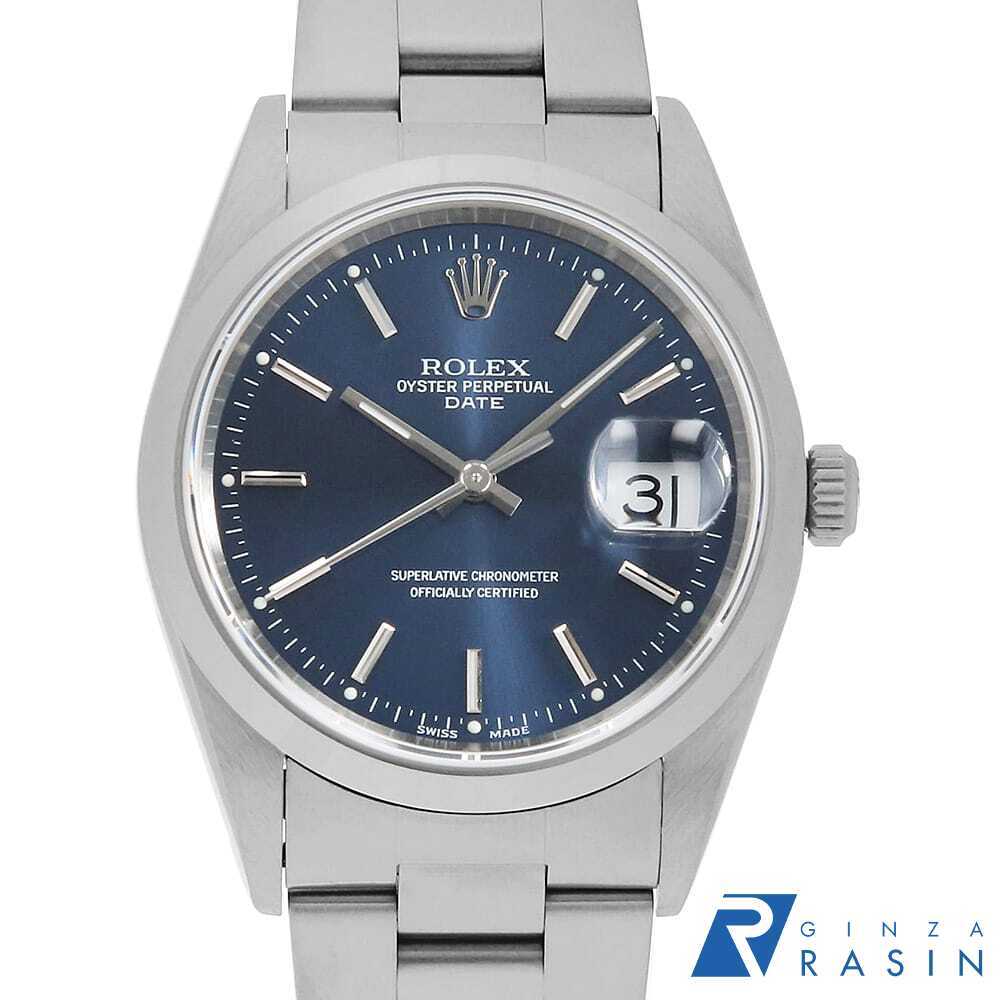> ロレックス オイスターパーペチュアル デイト 15200 ブルー バー P番 中古 メンズ 腕時計