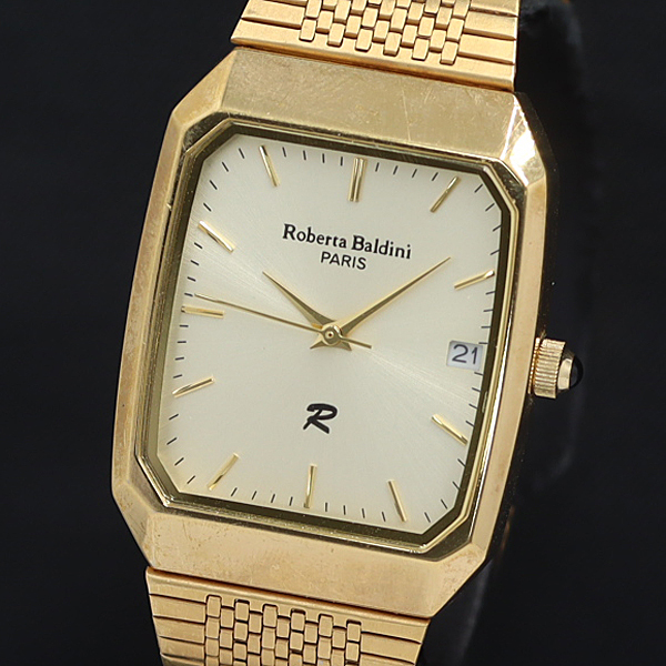 - 稼動 QZ ROBERTA BALDINI ゴールド文字盤 デイト レディース腕時計 KRK 2000000 NSK