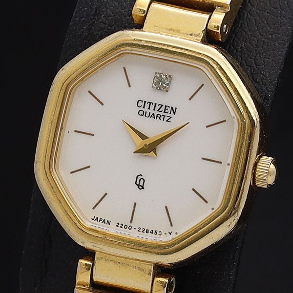 - 稼働 シチズン QZ 2200-224353 白文字盤 石付 オクタゴン レディース腕時計 IKE