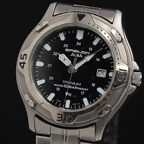 - セイコー アルバ QZ V732-0R90 黒文字盤 デイト ラウンド メンズ腕時計 TCY2000000 NSK