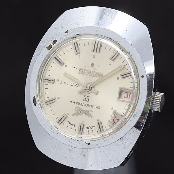 - 稼働 ベンソン デラックス 39 耐磁 銀文字盤 手巻 デイト ヴィンテージ メンズ腕時計 NSY 2000000 NSK