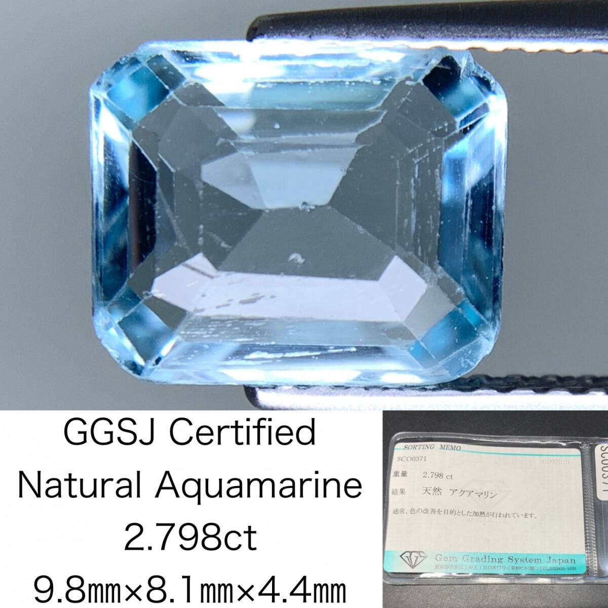 > アクアマリン 天然 2.798ct 宝石ソーティング付き 9.8×8.1×4.4 ルース( 裸石 ) 6758Y