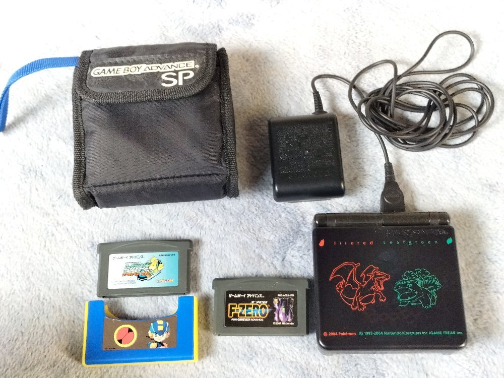 - 任天堂 2004年 ポケモン ゲームボーイアドバンスSP 本体 リザードン フジキバナ ケース アダプター ソフト付 確認済 希少(検 限定