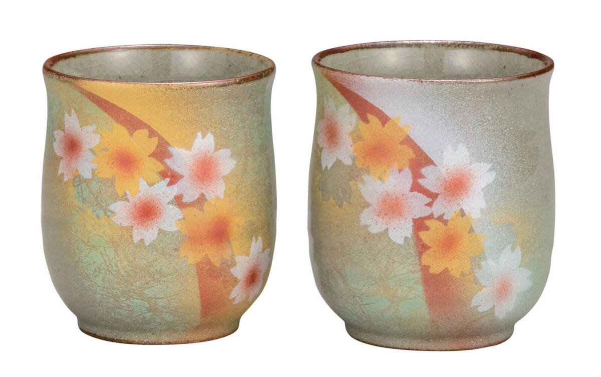- 九谷焼! ☆陽光花文・組湯呑☆ K9-762 新品 汲出 煎茶 ほうじ茶 茶器 ギフト