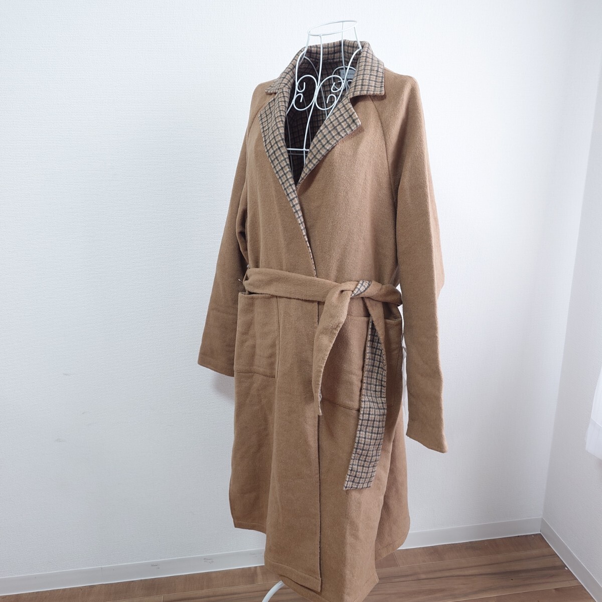 - レディース★ガウン調ロングコート★LLサイズ★キャメル