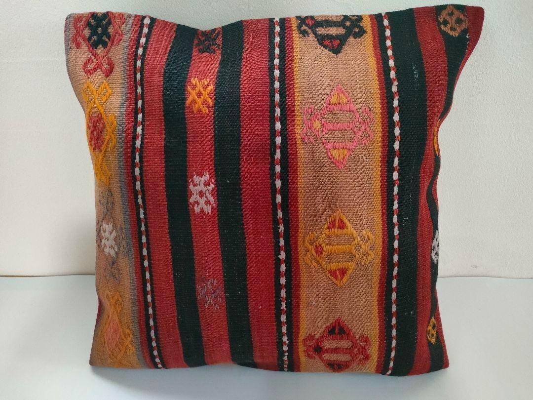- L9-14 トルコ 50cm オールドキリム クッションカバー ボーダー
