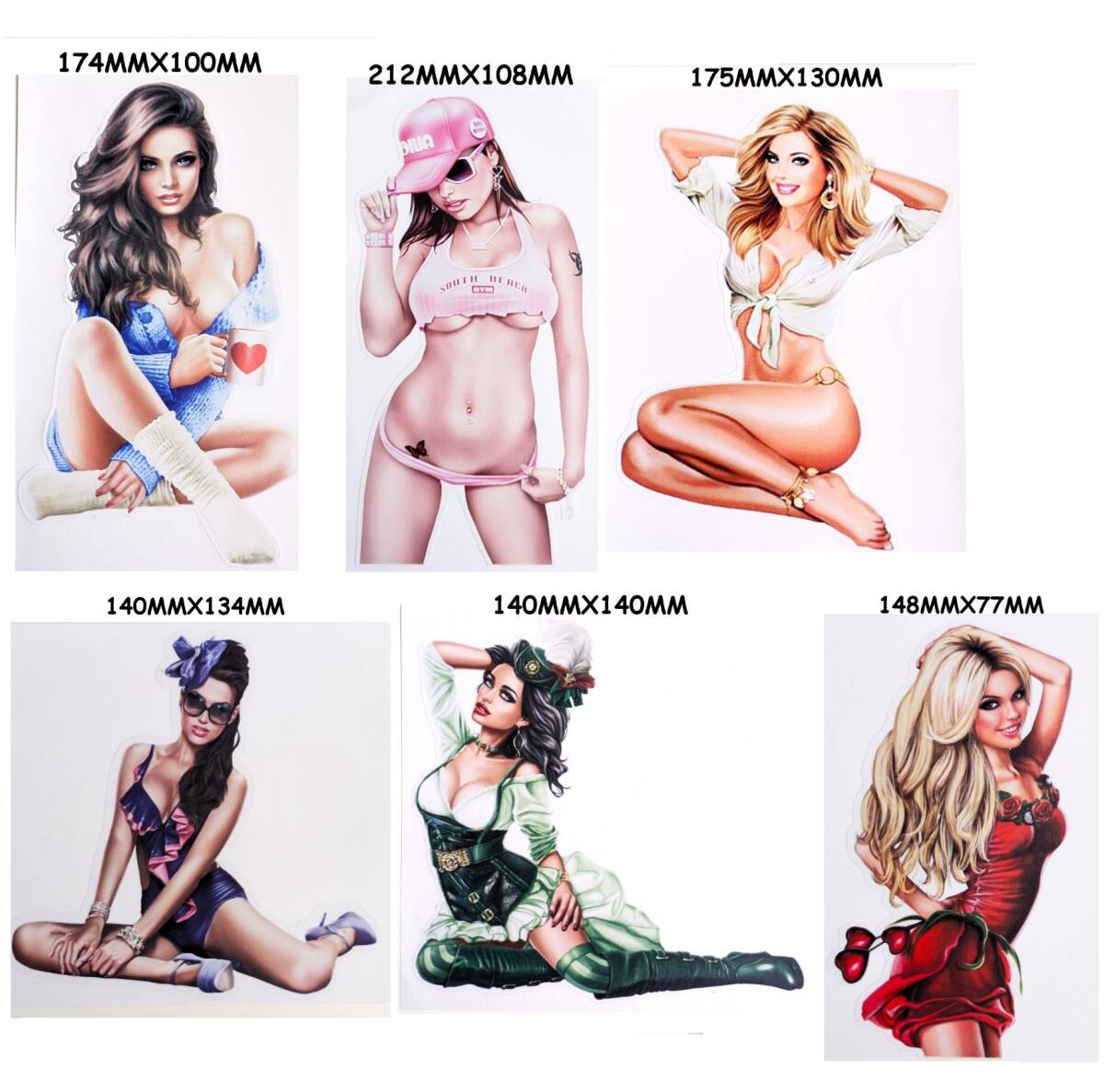 - 6枚! sale-03 特価 レトロシリーズ♪ 美人 グリーン 夏 ビーチ ボード ピンナップガール セクシーステッカー 車 バイク ギター ガレージ