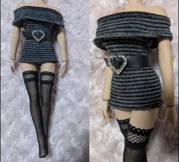 - 1/6ドール用 TBLeague ファイセンS07 クールガール ボーダーコスチューム ガーターストッキング