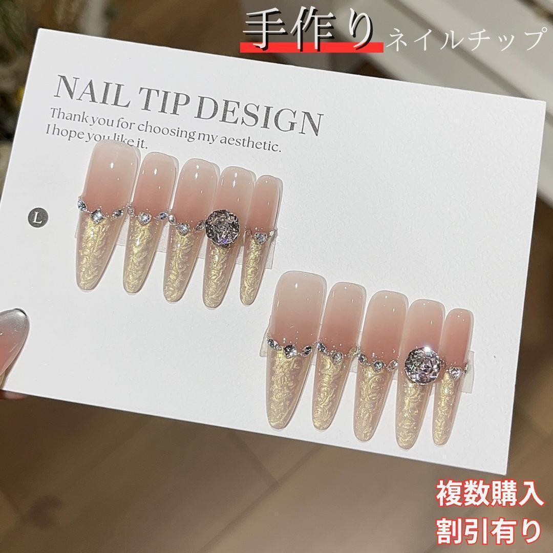 - ギャル ネイルチップ ロング ゴールド Sサイズ 付け爪 パーツ 量産型 韓国 付け爪 大人 ビジュー