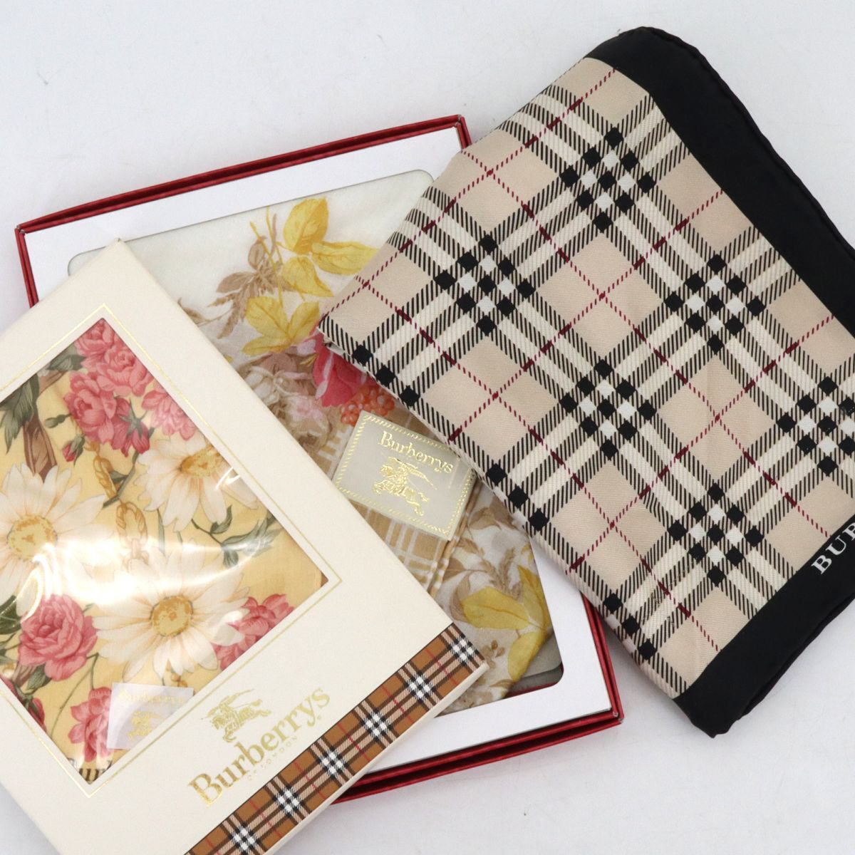 - e4898【BURBERRY】シルクスカーフ&ハンカチ2枚 バーバリー ハンカチ 未使用品