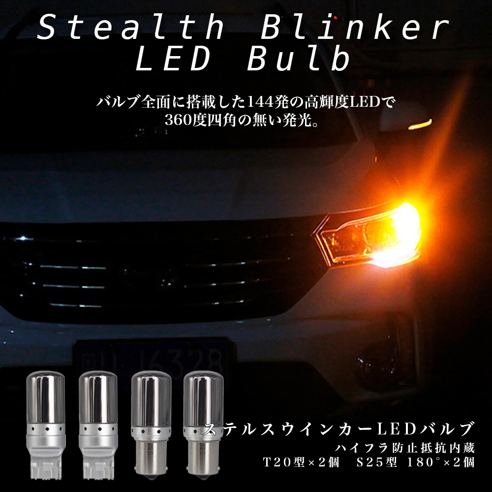 > ステルス ウインカー T20 & S25 180° LEDバルブ 4個 ハイフラ ピンチ部違い対応 平行ピン ハイフラ防止抵抗内蔵 クローム オレンジ 人気