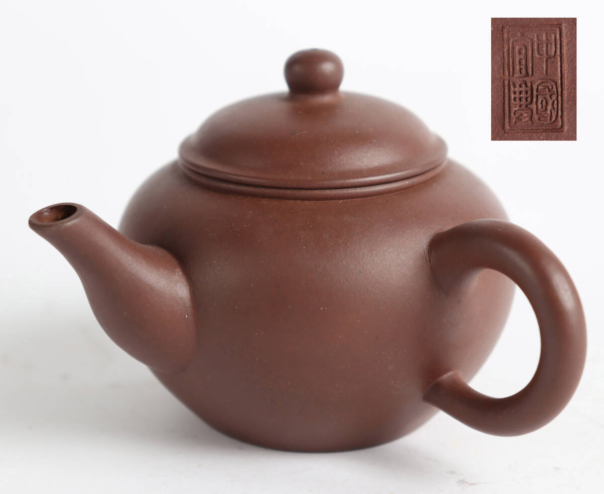 - 中国古玩 唐物 朱泥 大振り 横手急須 中国宜興(煎茶壷紫砂)E858