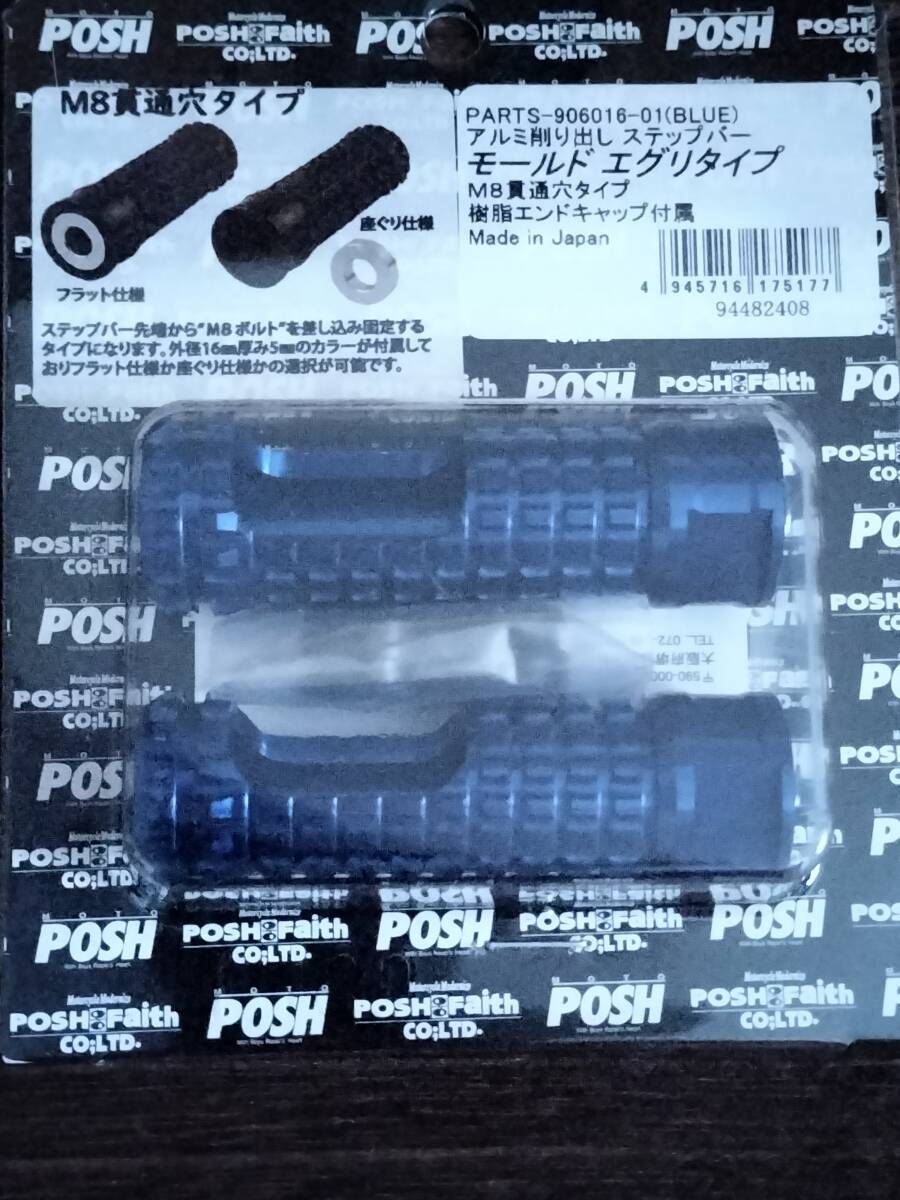 > ポッシュフェイス POSH FAITH アルミマシンドステップバー モールド [エグリ] M8貫通穴 ブルー 906016-01 日本製