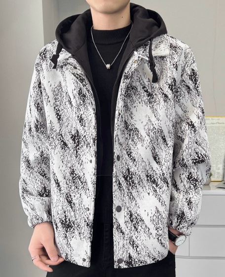 - 新作 秋冬 オシャレジャケット 裏ボア ブルゾン フェイクインナー 作業服 厚手 アウターフード付き 黒白/XL