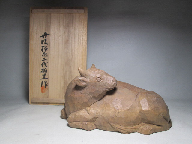 - ■『座 牛』丹波柏原二代磯尾柏里 造(磯尾健一)・木彫■検)一刀彫楠木郷土作家