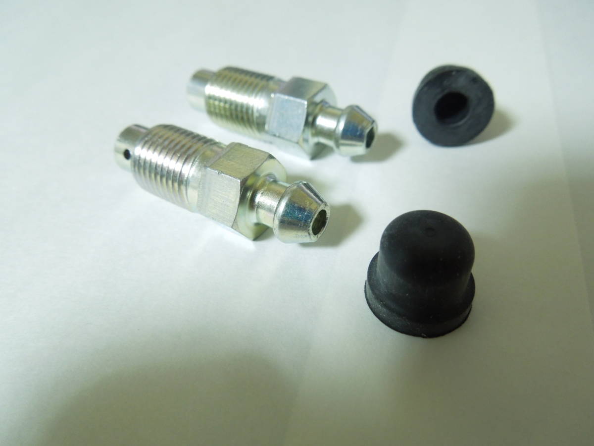 > 三菱ジープ(J53.J54.J55,J56,J57,J58,J59)用フロントブレーキ、エア抜き、ブリーダープラグ(バルブ)キャップ付(社外品)新品2個セット