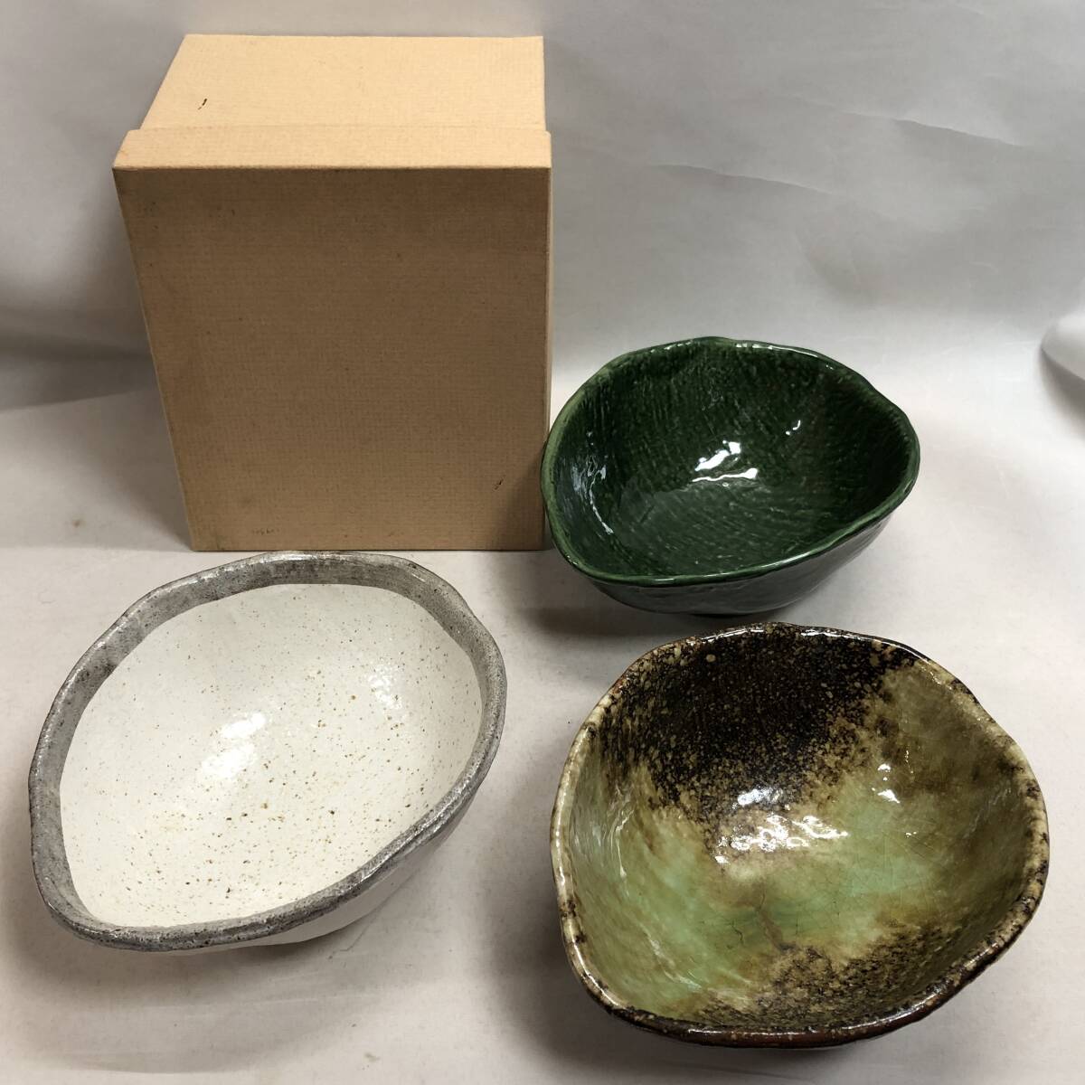 - 未使用◇美濃三彩 3ッ組鉢 万葉窯 窯変釉