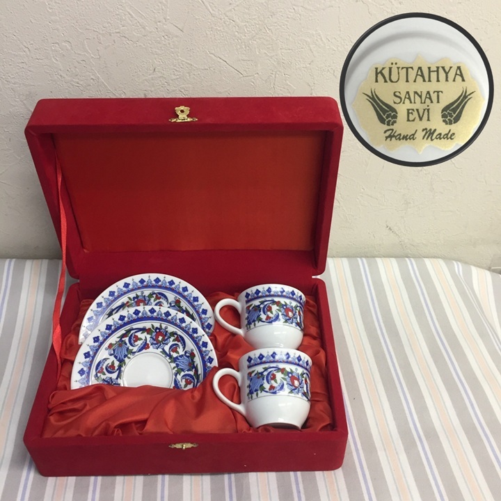 - [食器] 茶器「KUTAHYA」2客セット 高さ:約5.5cm 口径:約6cm カップ&ソーサー キュタヒヤ(キュタフヤ) おそらくデミタスカップ