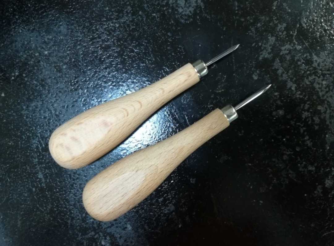- 国産 職人仕様 菱ぎり 極細目(2,0mm)、細目(2,4mm) 2本セット 研ぎ上げ済み レザークラフト 菱ギリ きり キリ ☆