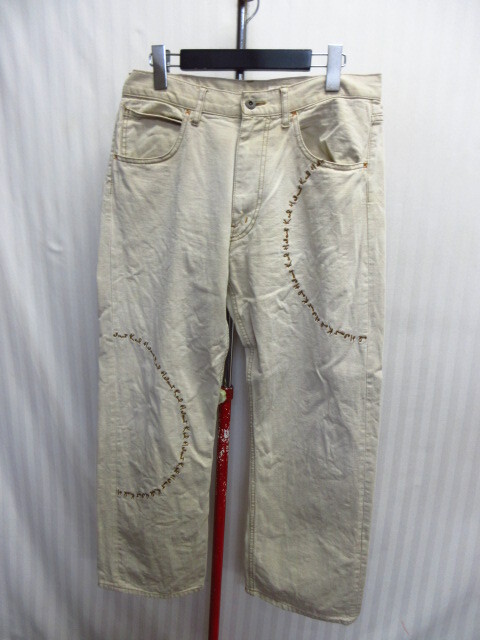 - カールヘルム ロゴ刺繍カラージーンズ メンズL ベージュ デニムパンツ カラーデニム Gパン ジーパン コットンパンツ 日本製 ズボン09102