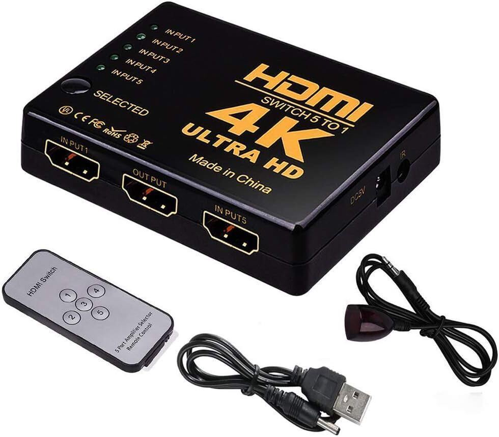 - サファイア HDMI 切替器 分配器 5入力1出力 4K セレクター 1080p 3DフルHD対応 自動手 動切り替え リモコン switch Blu-Ray DVD DVR