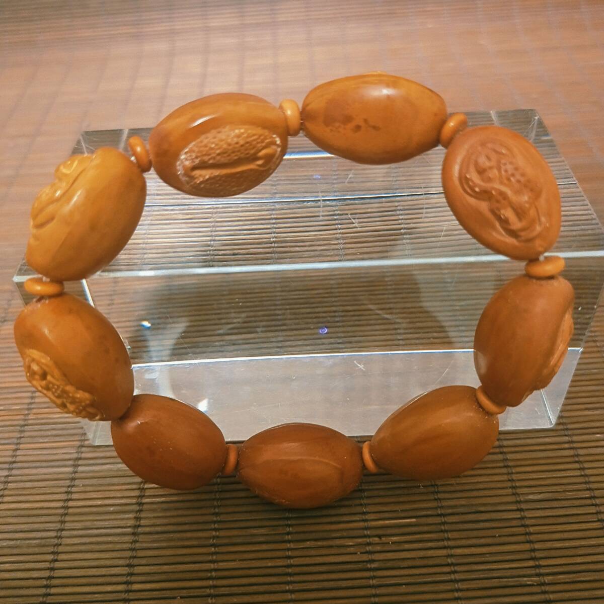 - £‰ 飾物‰£ 貴重希少 オリーブの種製 手彫 生命の起源 手鏈 数珠 手串 腕輪