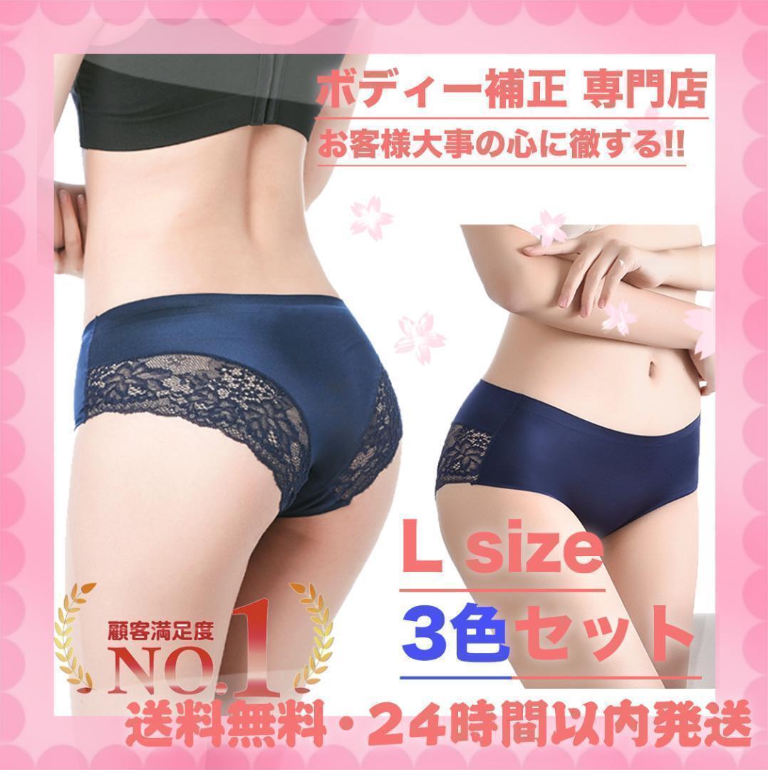- L 3枚セット レースシルク触感3枚セット、シームレスショーツ