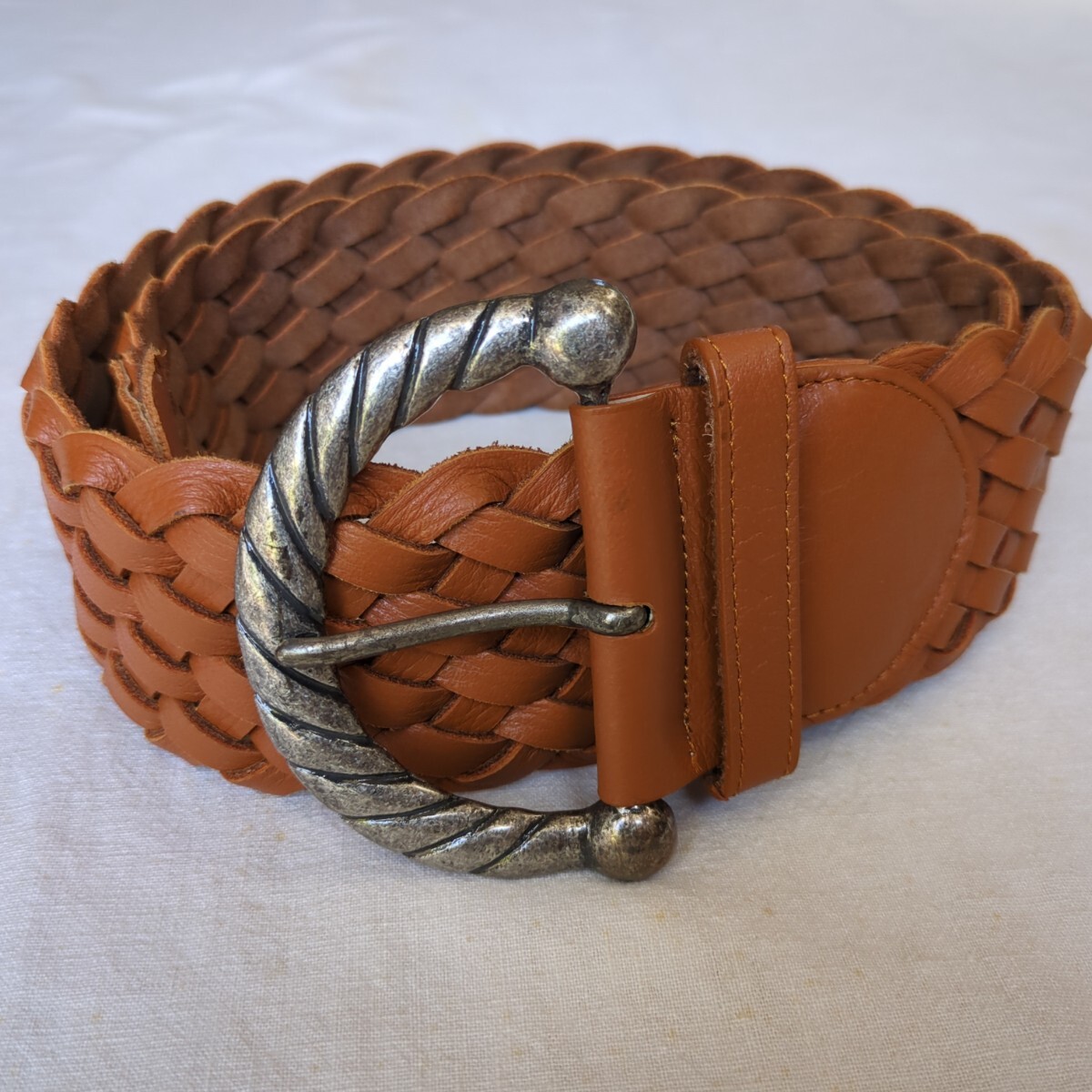 - 編み込みベルト 本革 幅広 フリーサイズ ベルト メッシュベルト 太ベルト レディース